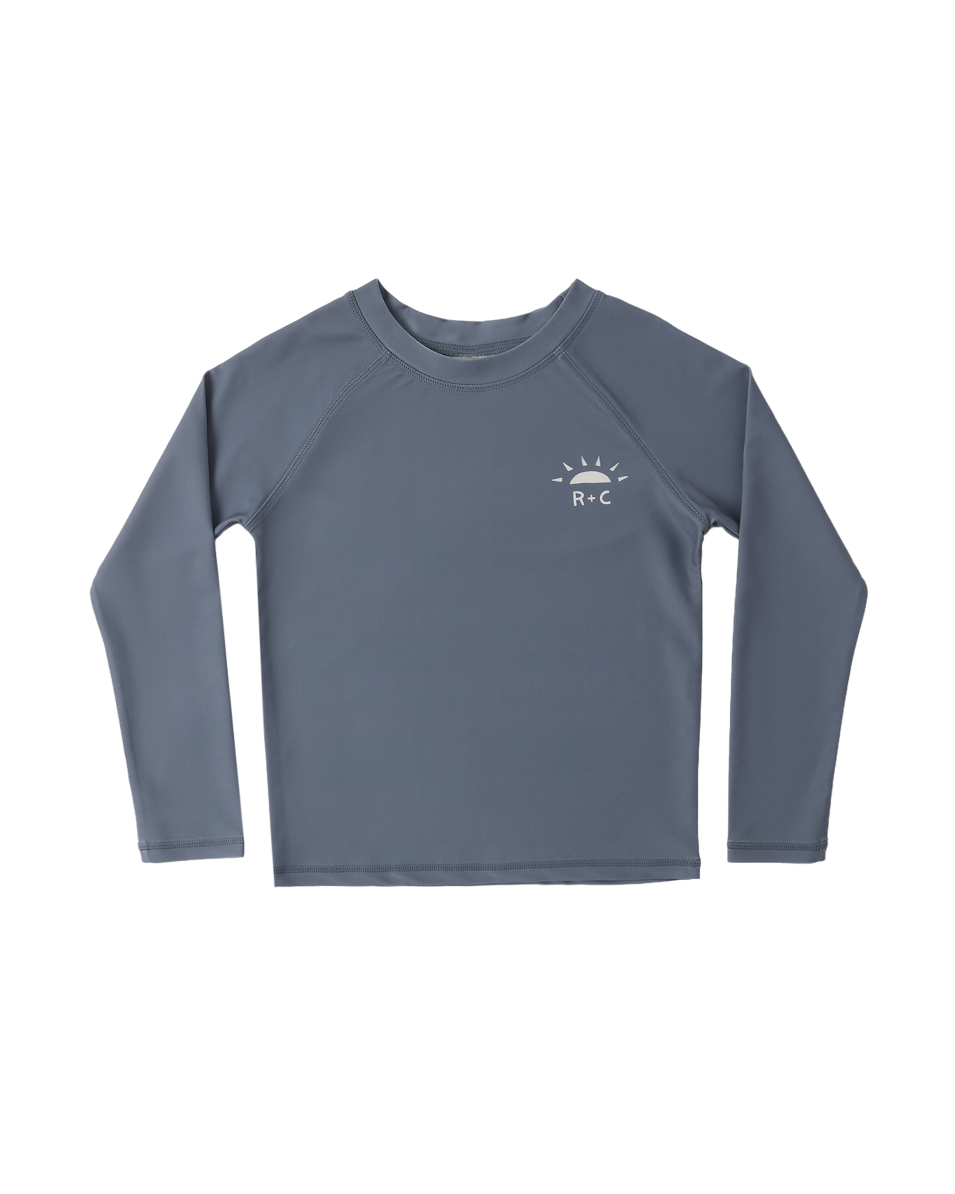 Built for summer days in and out of the water, this long sleeve rashguard offers sun protection without compromising on comfort. Made from soft, quick-drying fabric, it moves with your little one during swimming, surfing, or beach play. The deep marine color gives it a classic, timeless look that pairs perfectly with boardshorts or swim trunks for effortless coastal style.