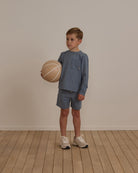 Featured in heathered indigo.