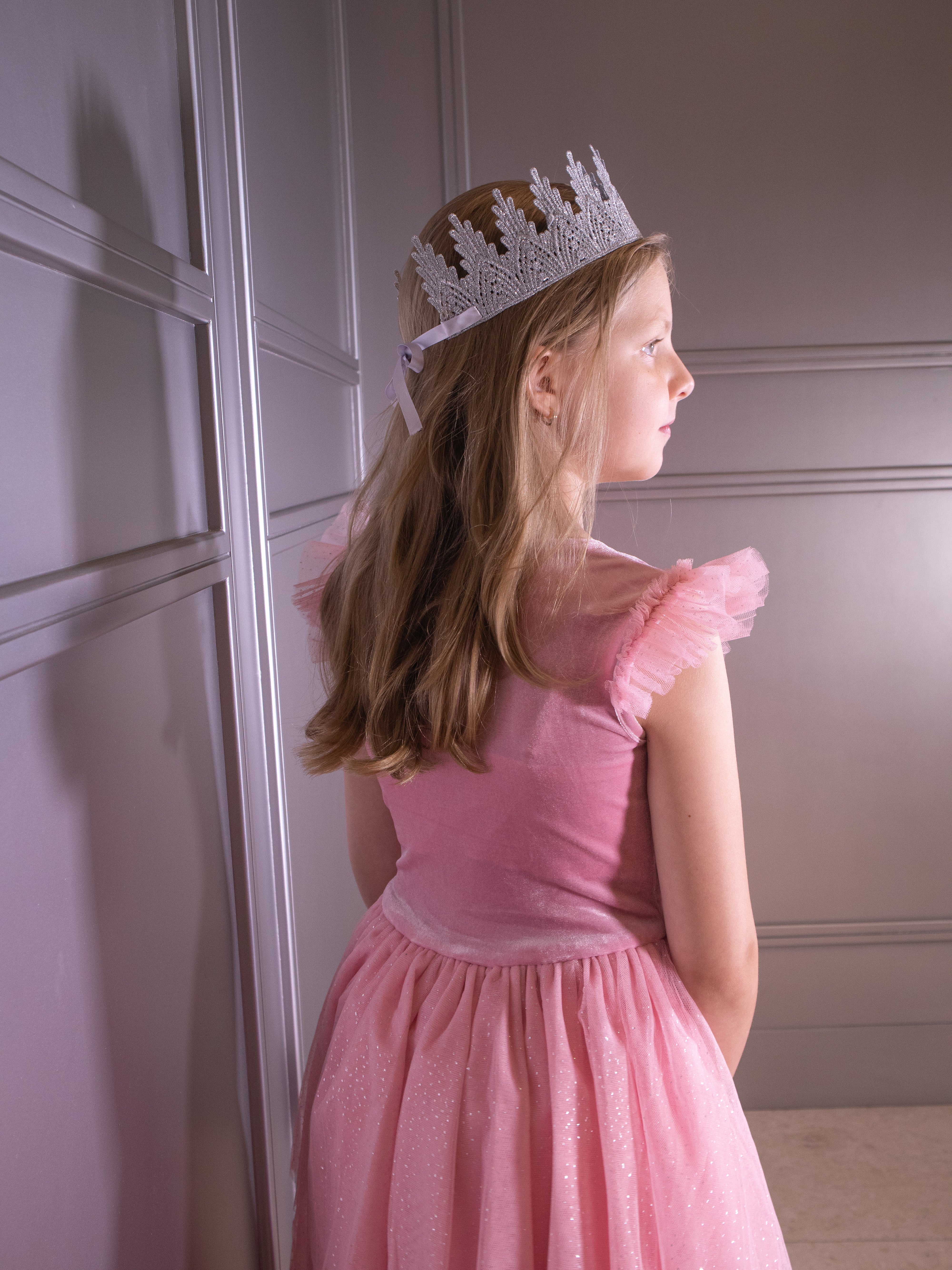 Make magical memories in our new Pink Ballgown, designed for little royals who love to shine! Whether it’s for a Glinda-inspired look or the perfect birthday princess outfit, this dress is all about enchantment. The voluminous three-tiered glittery tulle skirt adds a touch of fairy-tale elegance, while the soft lining ensures comfort for all-day play. The iridescent stretch bodice, also fully lined, shimmers beautifully with every twirl, and the delicate tulle cap sleeves complete the dreamy silhouette. Perfect for dress-up, performances, or any special occasion where a little extra sparkle is a must!