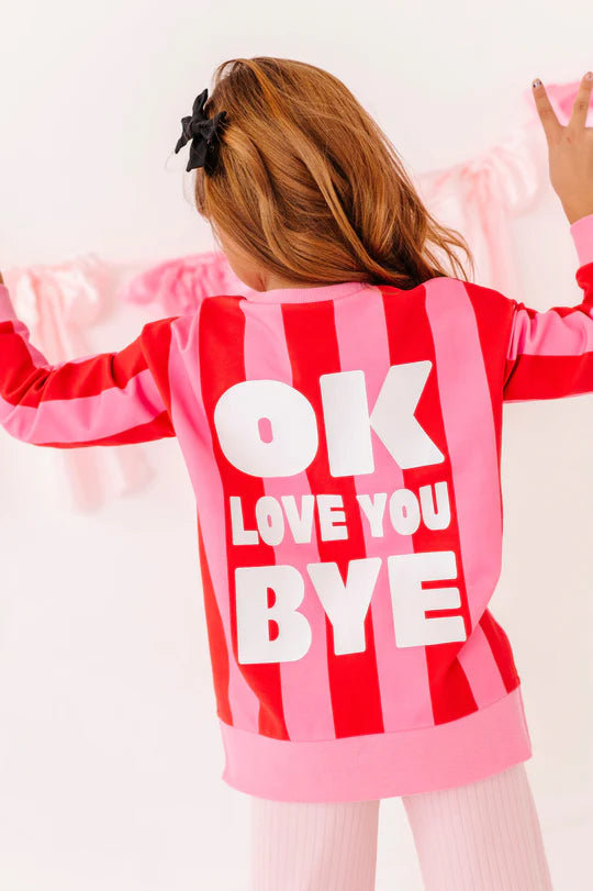 A stunning top perfect for the Valentine's season! "OK, Love you, Bye!" is one of the pieces in our playful, sweet Valentine's collection lineup! Fun, colorful, and super comfortable, this top works well for Valentine's events, pictures, playtime, or just an everyday outfit--and all of the love-filled moments in between.