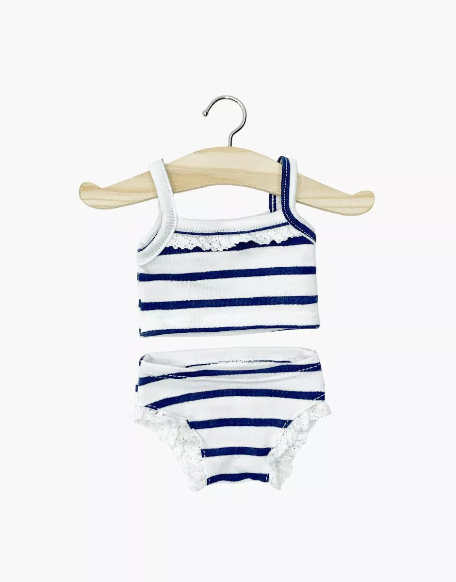 Les P'tits Basics – Girl's Navy Blue Striped Jersey Underwear with Lace