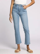 Introducing Charlee High Rise jeans, the perfect blend of vintage style and modern comfort. Made from premium cotton, these jeans are washed to perfection for an authentic look. The high waist and kick flare leg provide a flattering silhouette, while the ankle length adds a touch of modernity.