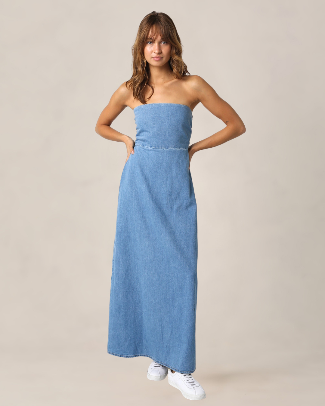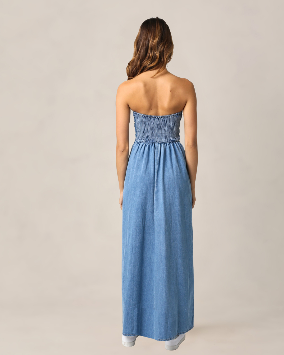 Refresh your wardrobe with the ultimate transitional staple, our Strapless Denim Maxi Dress, a highlight of the new Pre-Spring collection at Wrightsville Ave. This chic silhouette features a sophisticated neckline and a length designed to hit just above the ankle, making it the perfect canvas for showcasing your favorite spring sandals. Whether you're heading to a coastal wedding rehearsal or a sunset dinner on the Riverwalk, this dress combines the structured look of denim with the effortless ease of a sundress.